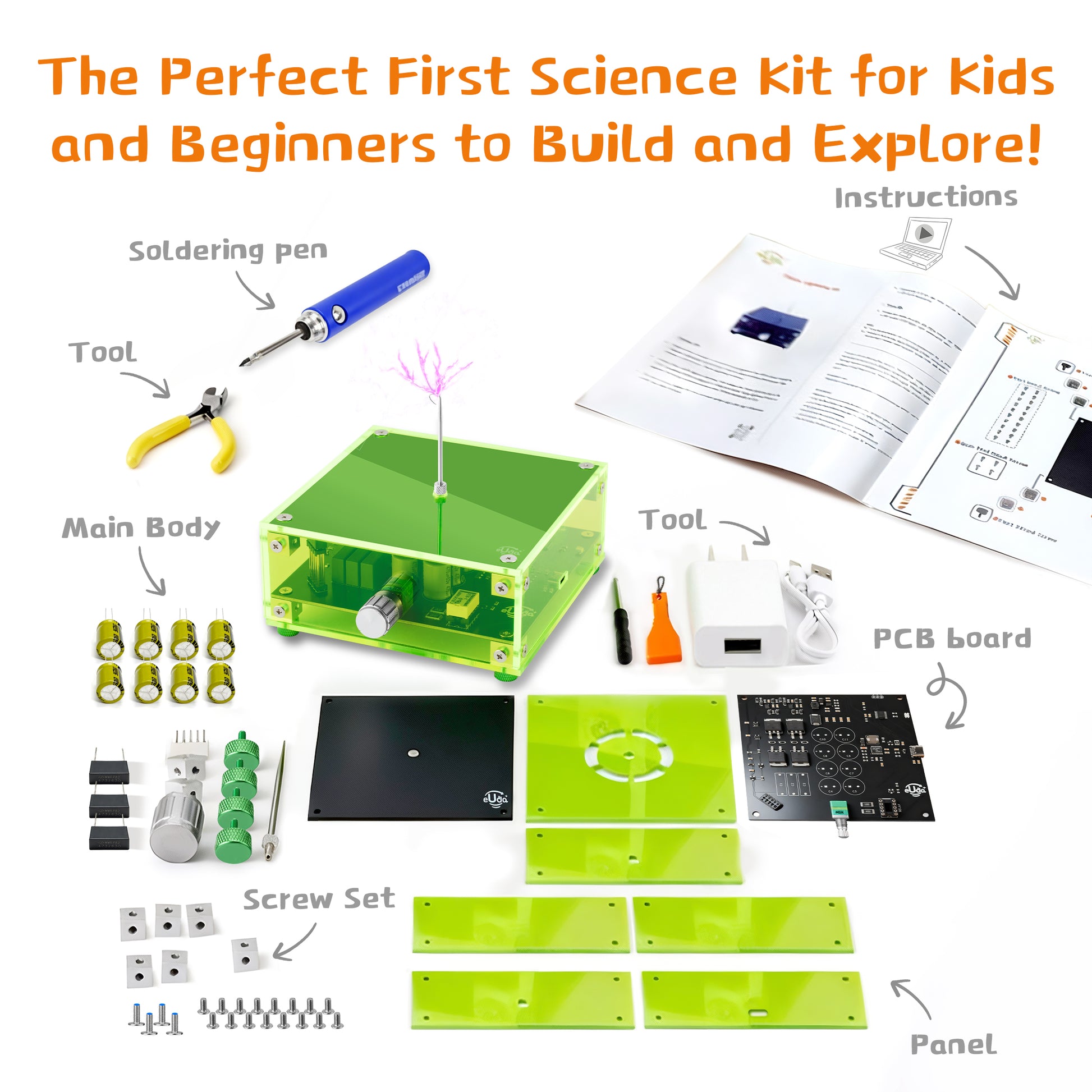 A hands-on electronics kit that lets kids solder real components and assemble a safe tabletop lightning project.